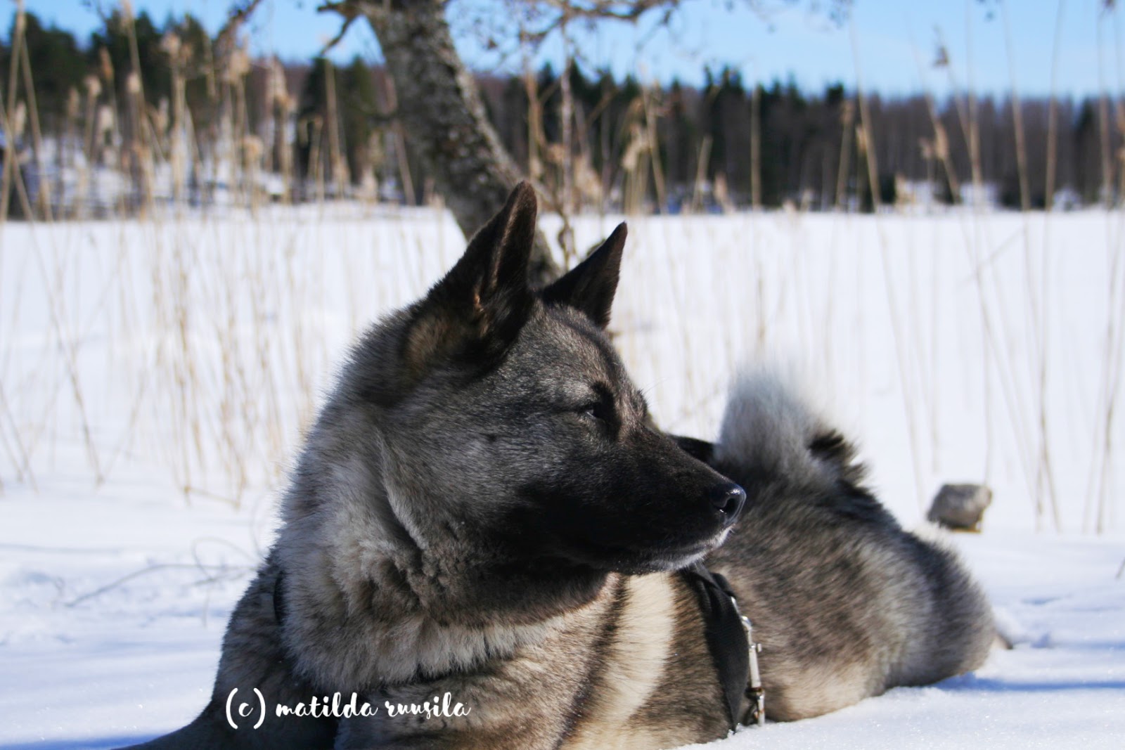 Huoh... Apparently Pörri wanted to do something new with her life and she decided to run around our neighbourhood.. Pörri broke the fence and was one and half hours away. During that she ran by the river, on the fields and chased a cat. The cat is alright and nothing happened.
